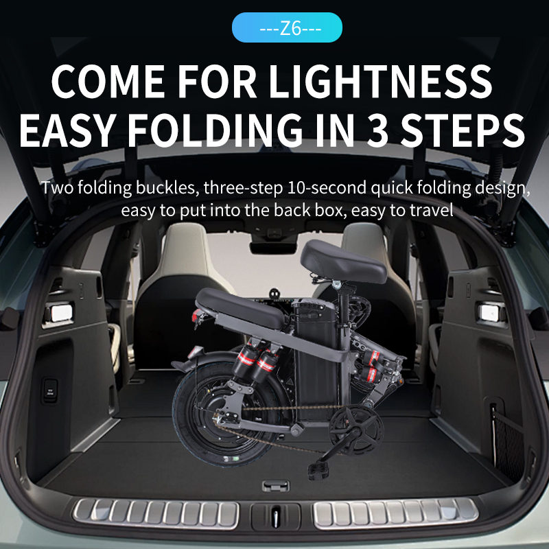 | 1.Motor: 400W brushless full-disc motor 2.Tires: 14*2.50 vacuum tires 3.Battery: 48V - 12A lithium battery compartment 4.Brake mode:Front and rear mechanical disc brakes. 5.Function: mobile phone holder, spotlights and a controller with self-check function. |
