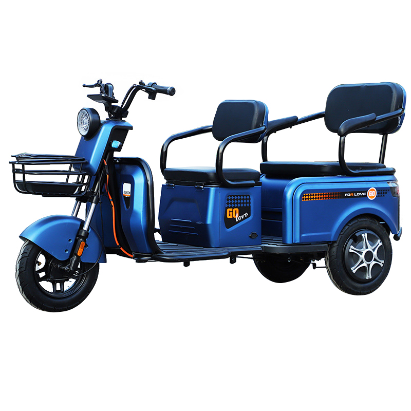 1. Tire:300-8 vacuum tire 2. Motor:800w brushless motor 3. Controller:12-tube ultra silent controller 4. Charging time: 4-8 hours 5. Maximum load: 300kg 6. Maximum speed: 25km/h 7. Battery: 60V20Ah Lead Acid battery 8. Brake mode: Front and rear drum brake 9. Configuration: Remote alarm/LCD display/turn light/three speed mode/Reverse gear |