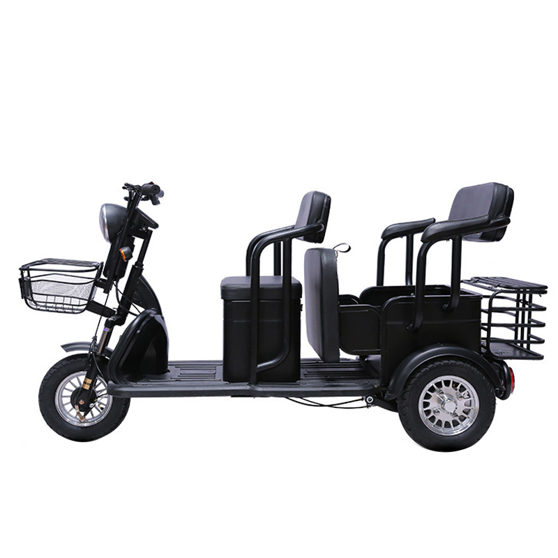 | 1. Tire:300-8 vacuum tire 2. Motor:800w brushless motor 3. Controller:12-tube ultra silent controller 4. Charging time: 4-8 hours 5. Maximum load: 300kg 6. Maximum speed: 25km/h 7. Battery: 60V20Ah Lead Acid battery 8. Brake mode: Front and rear drum brake 9. Configuration: Remote alarm/LCD display/turn light/three speed mode/Reverse gear |